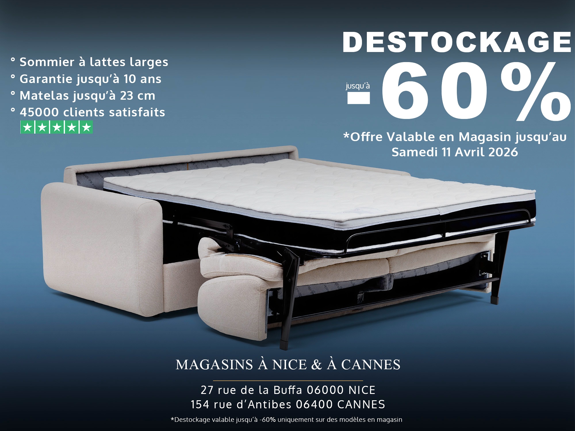- Le sommier en acier thermo-soudé qui est à 100% en acier, adapté pour un couchage régulier ou occasionnel.
